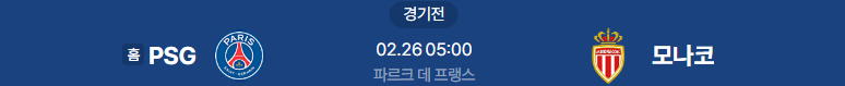 해외축구분석 2/26일 챔피언스리그 파리생제르맹 AS모나코 해외축구중계