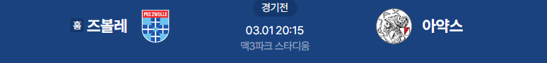 해외축구분석 3/1일 에레디비시 즈볼레 아약스 해외축구중계
