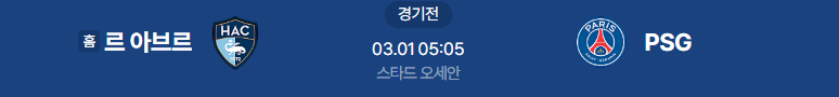 해외축구분석 3/1일 리그앙 르아브르 파리생제르맹 해외축구중계